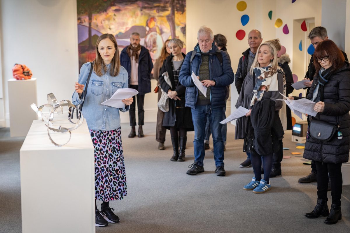 Attendees were treated to a captivating introduction and guided tour led by Suzanne Lyle and Joanna Johnston of the Arts Council’s Collections and Acquisitions team. Their insightful commentary provided a rich context for the diverse array of works on display, spanning painting, sculpture, print, photography, and craft. This vibrant selection celebrates two decades of artistic excellence, showcasing Northern Ireland-based artists from emerging to established in their careers.