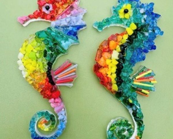 Kids will create two shimmering fused glass seahorses.