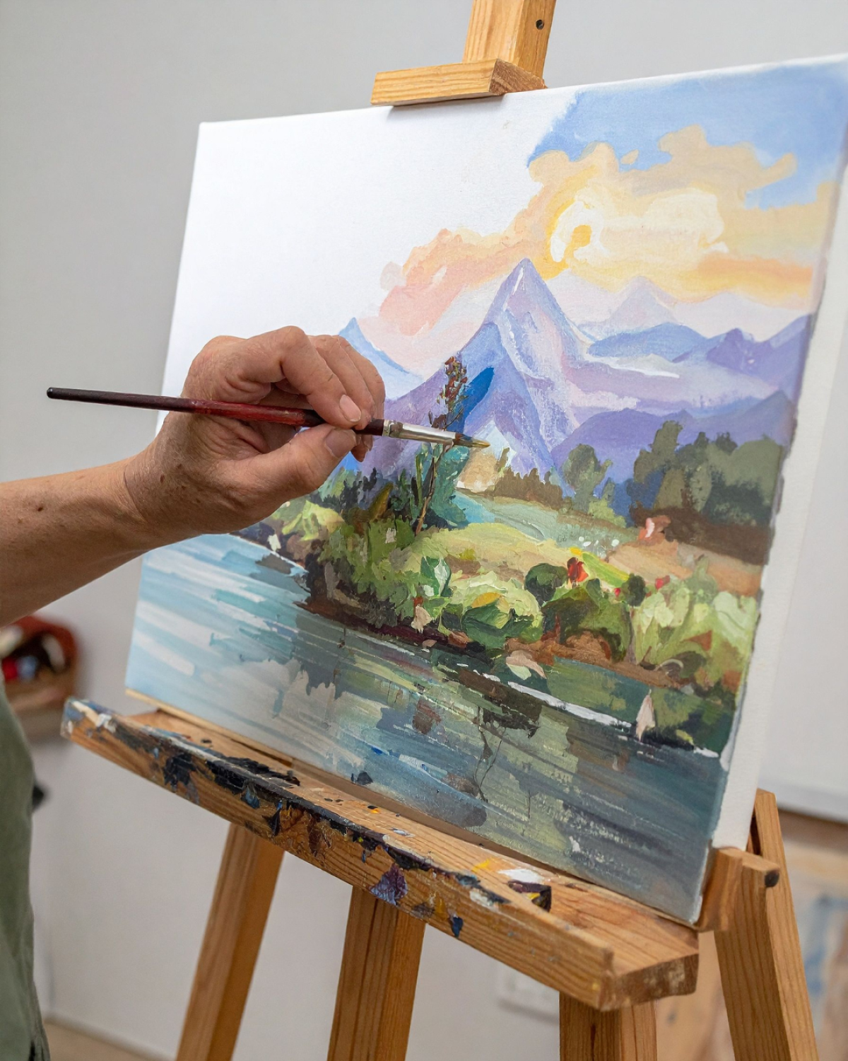 Explore colour and brushwork as you create your own painted landscape in this gentle beginner-friendly session.